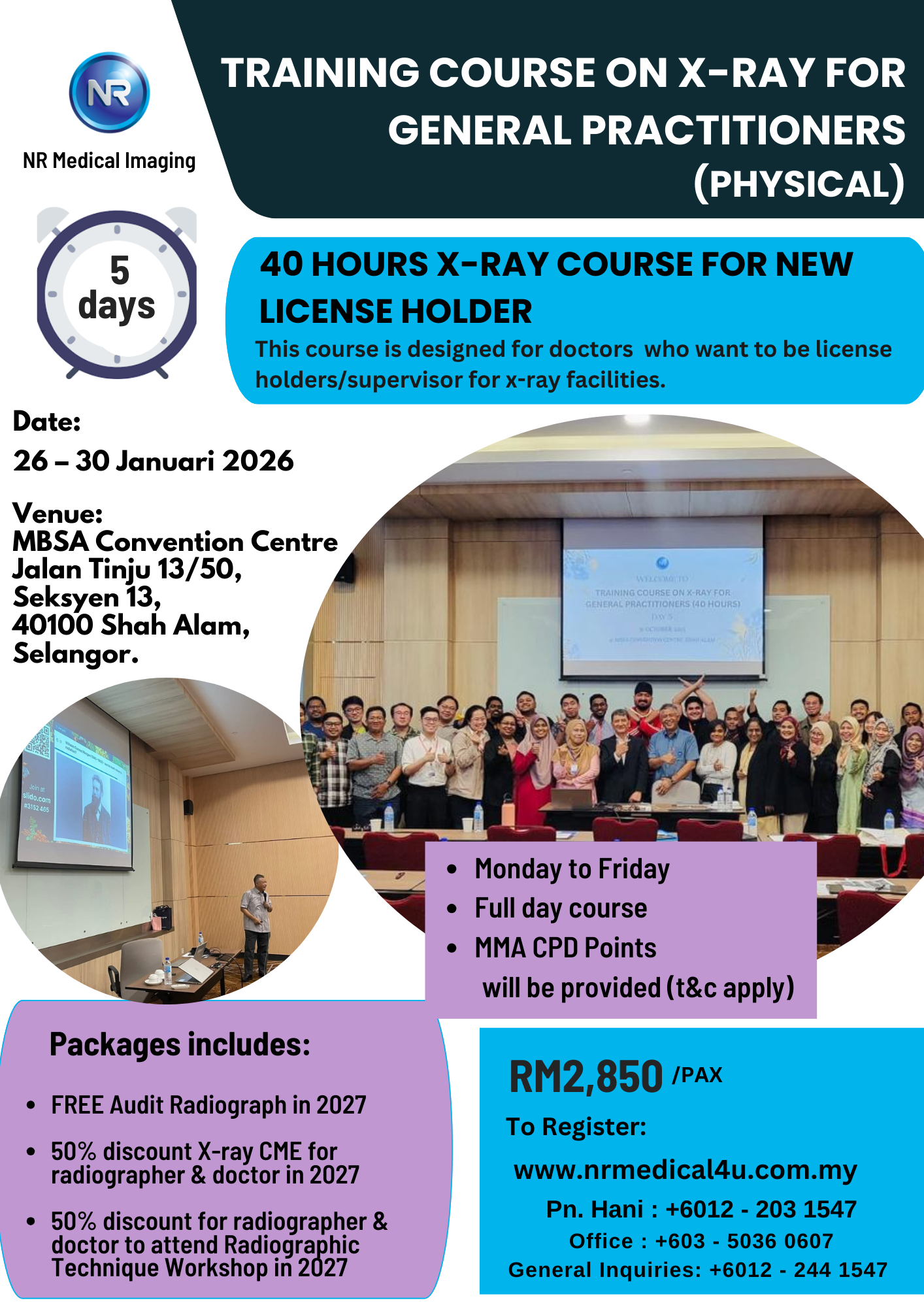 X-RAY LICENSE COURSES - Training Course on X-ray for GP (40 hours) 26 - 30 January 2026