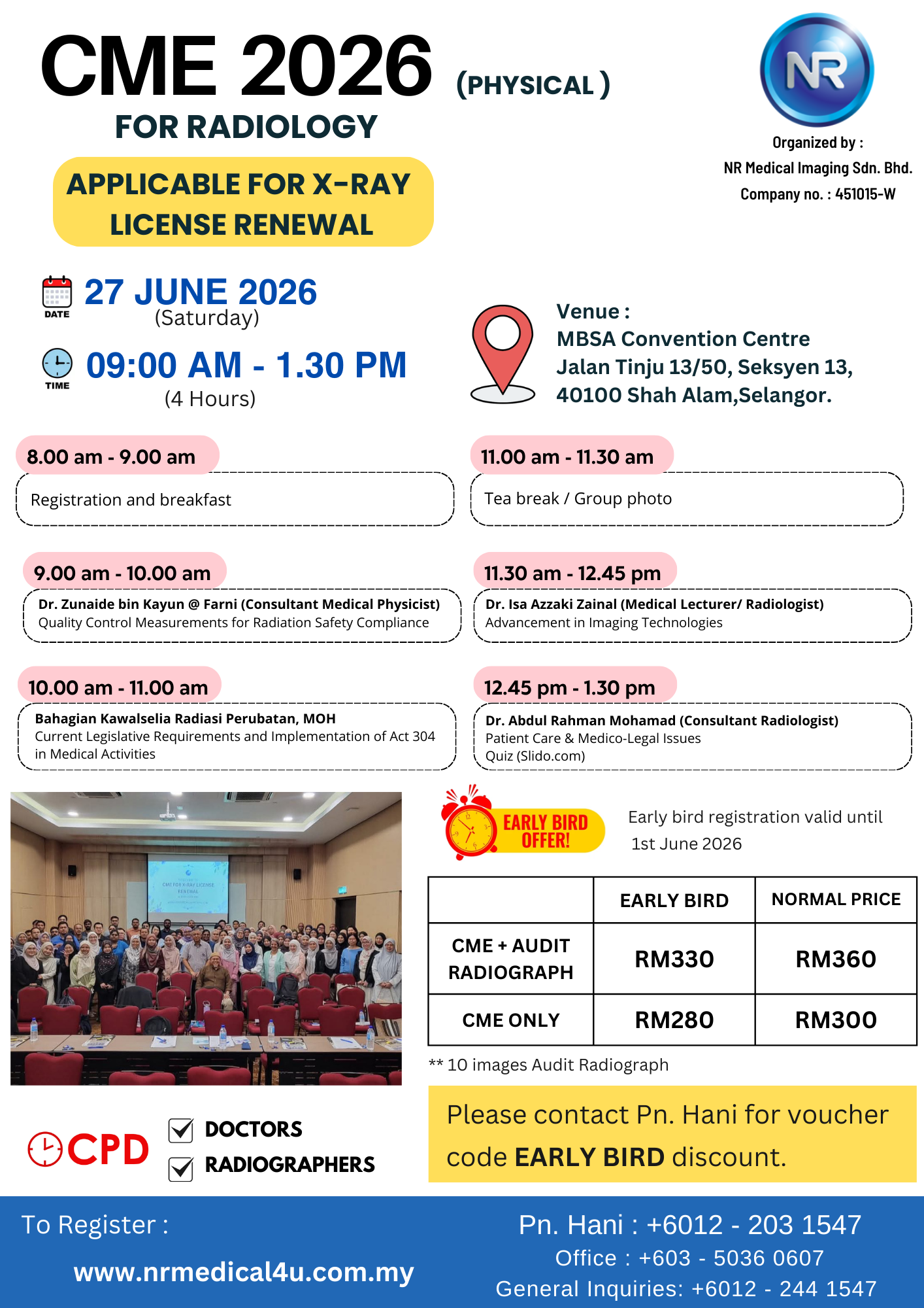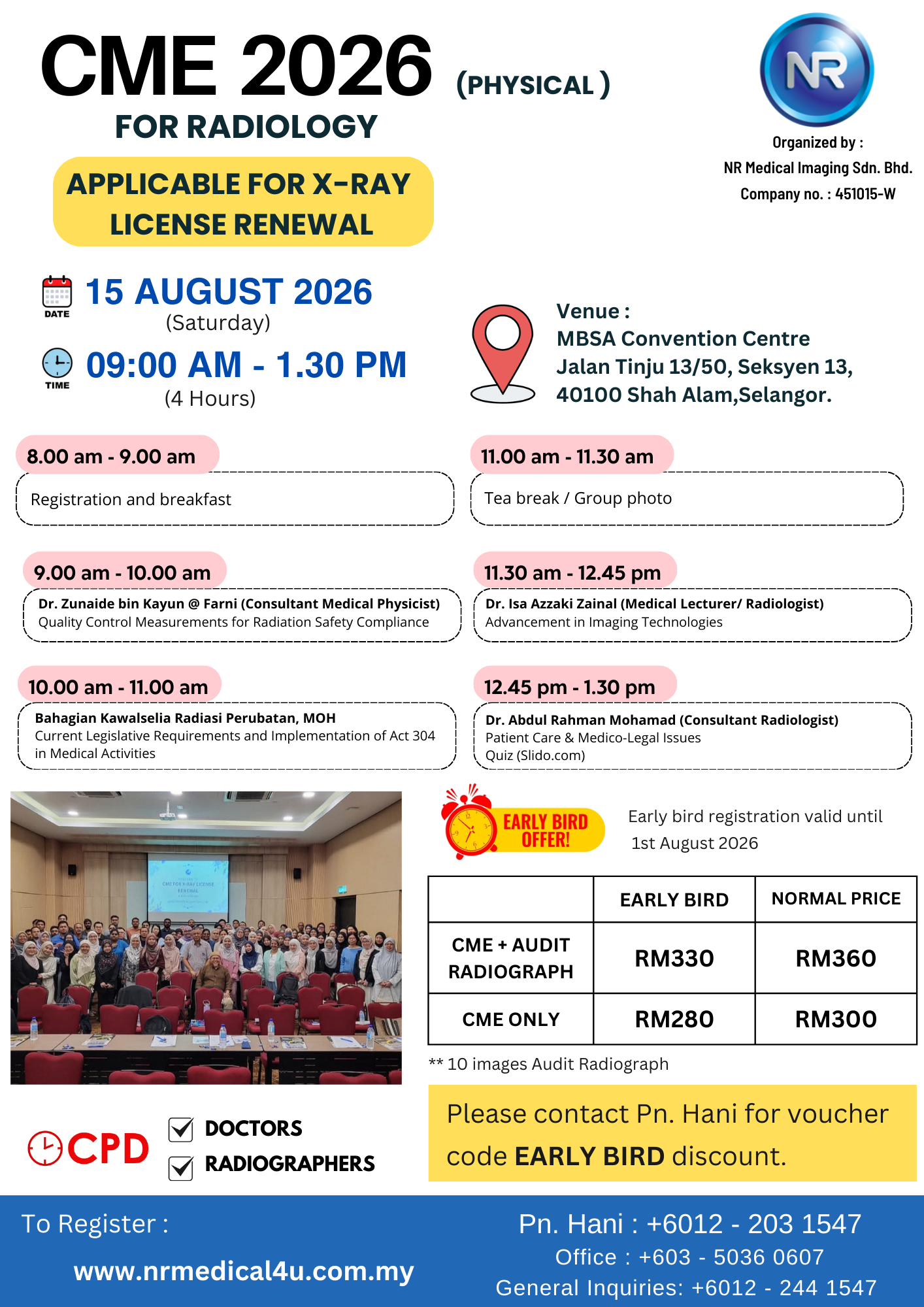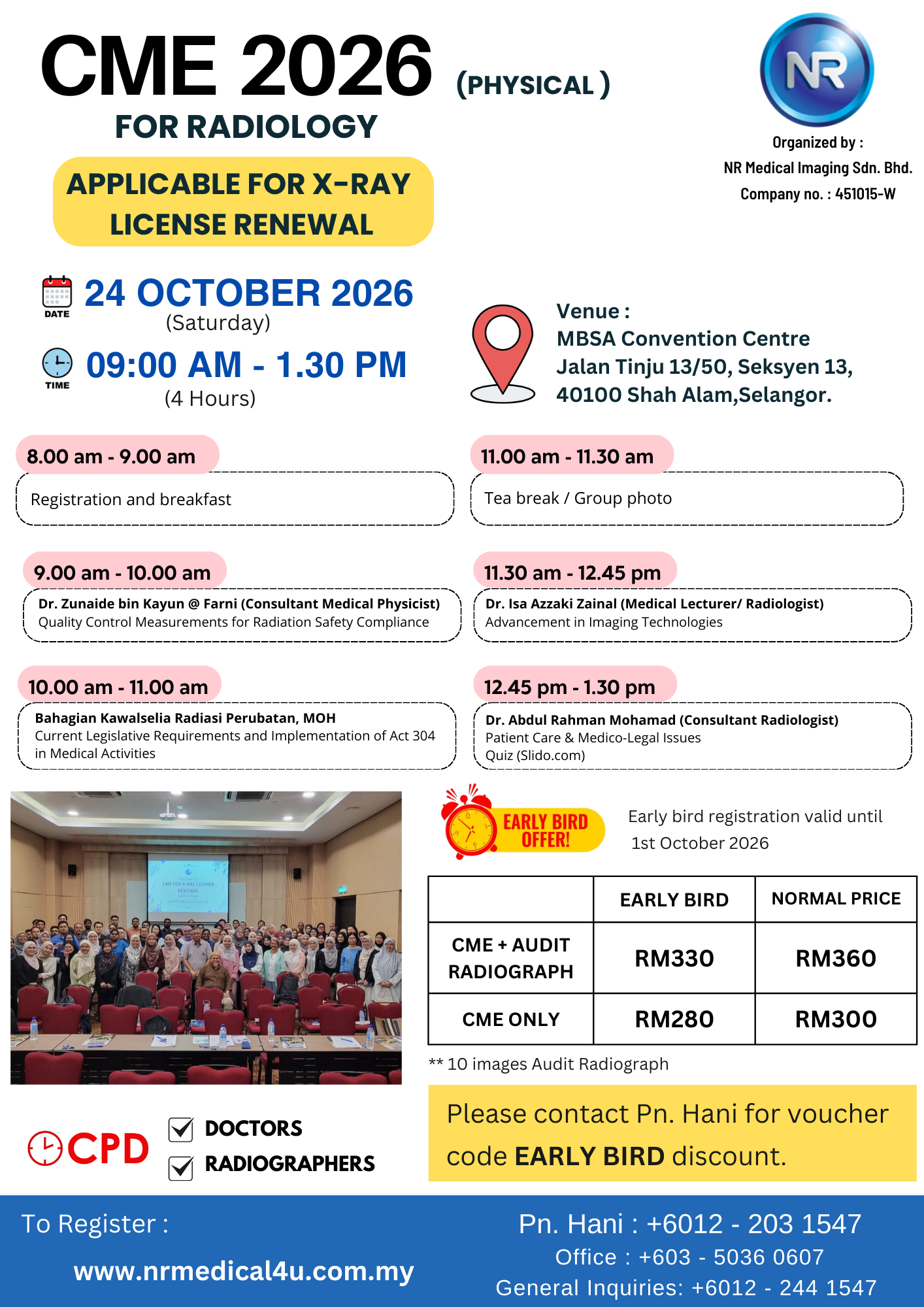 - 50% discount for Radiographer to attend Radiographic Technique Workshop
