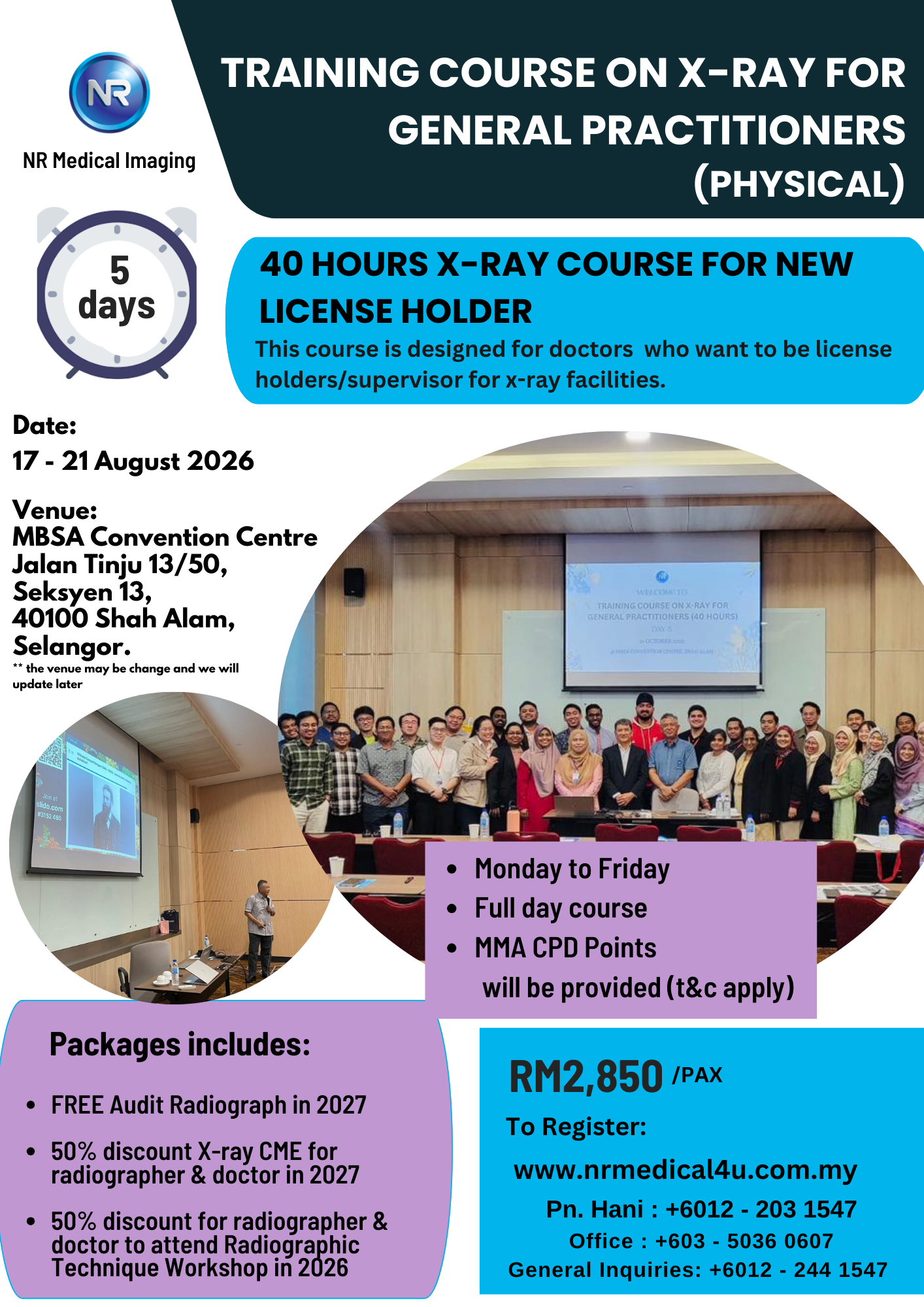 X-RAY LICENSE COURSES - Training Course on X-ray for GP (40 hours) 17 - 21 August 2026